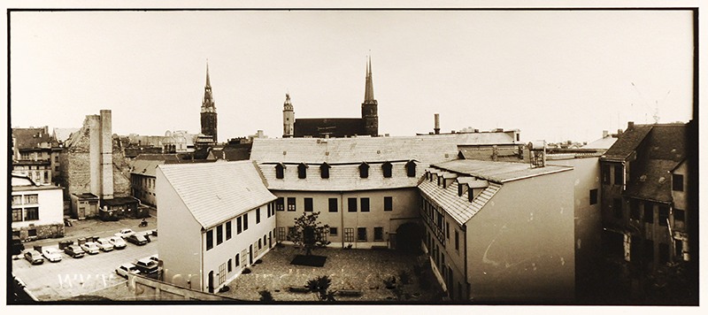 Hof des Hädelhauses // // Auflage: Stk. Bildmaße HVOF 120° (31 x 14 cm) Werner Schönfeld Suchbegriffe: Halle, Händelhaus, fünf Türme, Roter Turm, Marktkirche http://www.haendelhaus.de/de