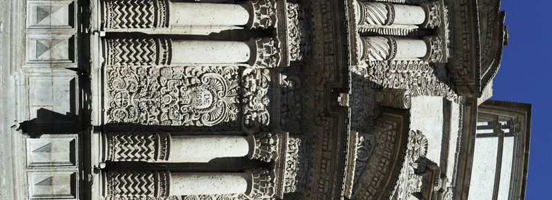 Säulen der Jesuitenkirche // 2011 // Auflage: (50 x 137 cm; 33 x 90 cm) Stk. Bildmaße HVOF 30°; FVOF 90° Ingolf Knetsch Suchbegriffe: Peru, Arequipa, Kirche