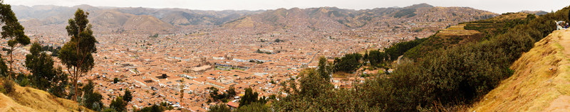 Blick über Cusco 1 // 2011 // Auflage: (90 x 18 cm; 250 x 50 cm) Stk. Bildmaße HVOF 155° Ingolf Knetsch Suchbegriffe: Peru, Cusco, Stadt, Panoramablick