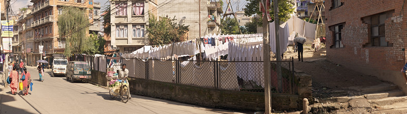 Trockenplatz // 2014 // Auflage: (90 x 25 cm; 175 x 50 cm) Stk. Bildmaße HFOV 100° Ingolf Knetsch Suchbegriffe: Swayambhu Marg, Kathmandu, Strassenszene