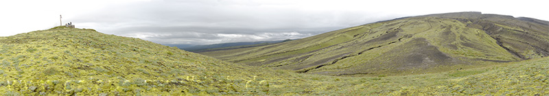 Seljonajahuette1 // 2007 // Auflage: Stk. Bildmaße HFOV etwa 200° Ingolf Knetsch Suchbegriffe: grüne Hütte, Vulkan, Berge, Kamtschatka, Kljutschewskaja Sopka, Zeltlager 1200 m